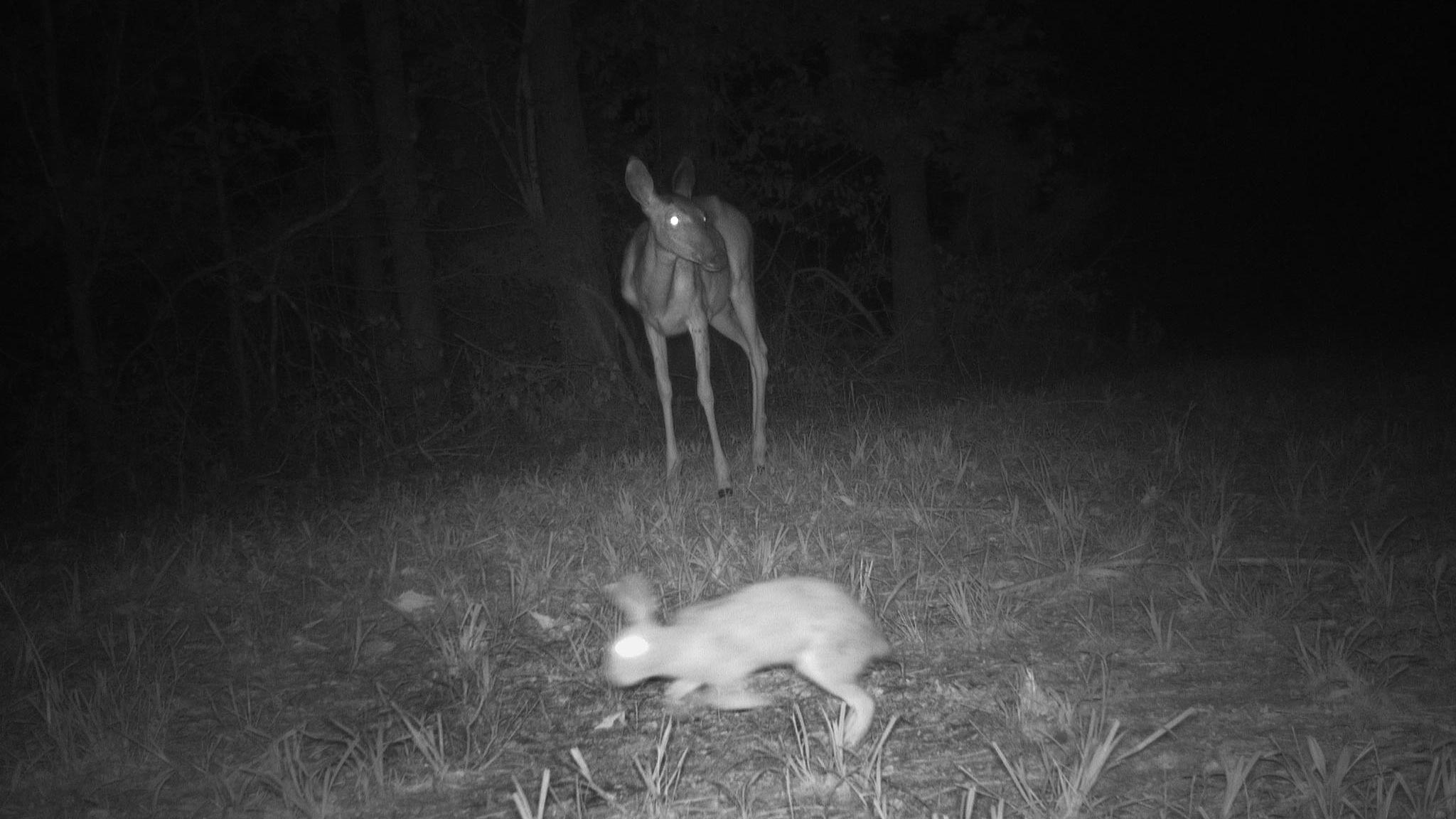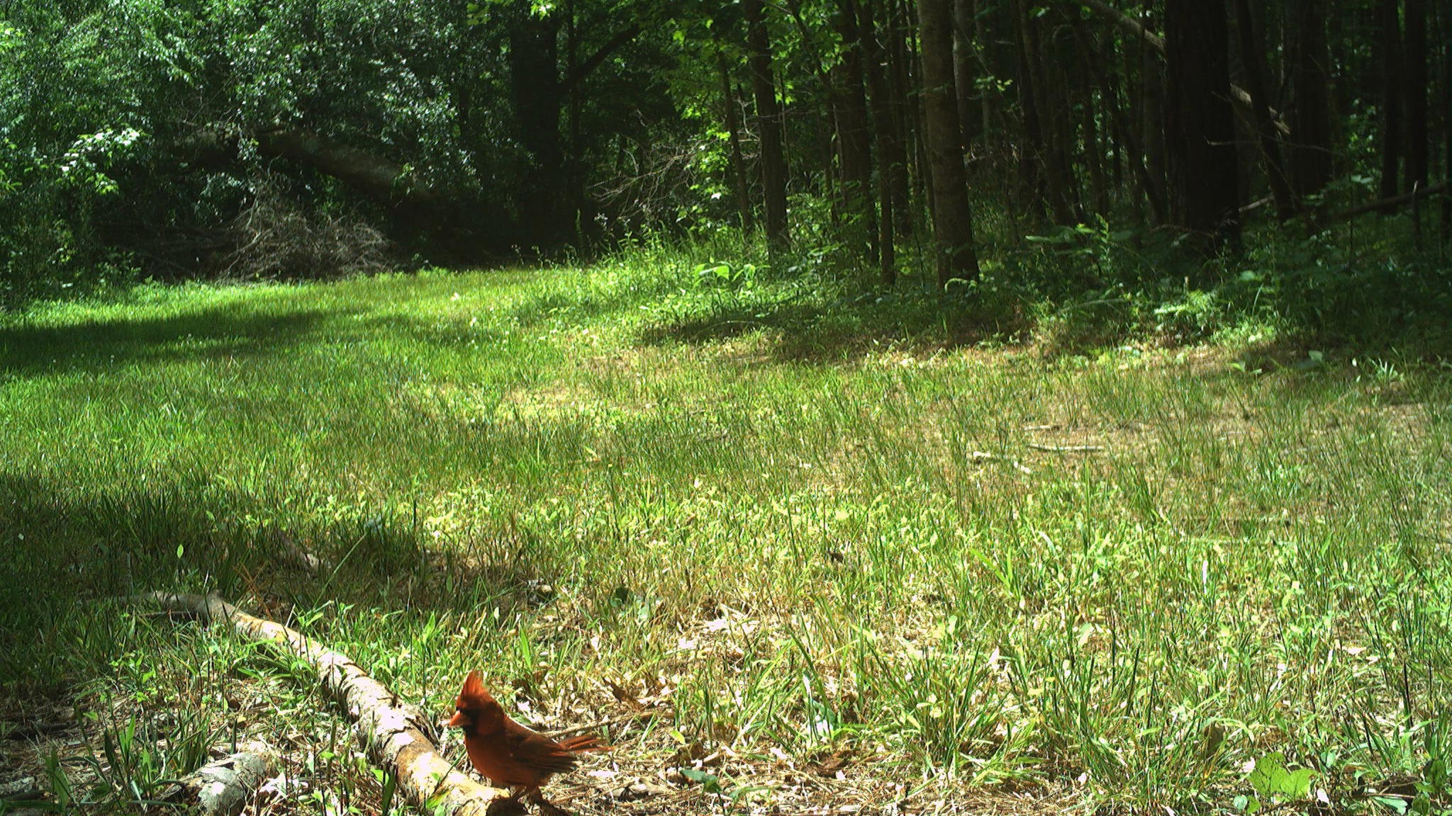We have spotted several more fawns already, including a pair of twins staying close behind their mother. Paintjob, our resident piebald doe, also made an appearance, with her own fawn nearby. Northern Raccoons and Eastern Gray Squirrels were especially active, while Northern Cardinals added bright pops of color to the data.