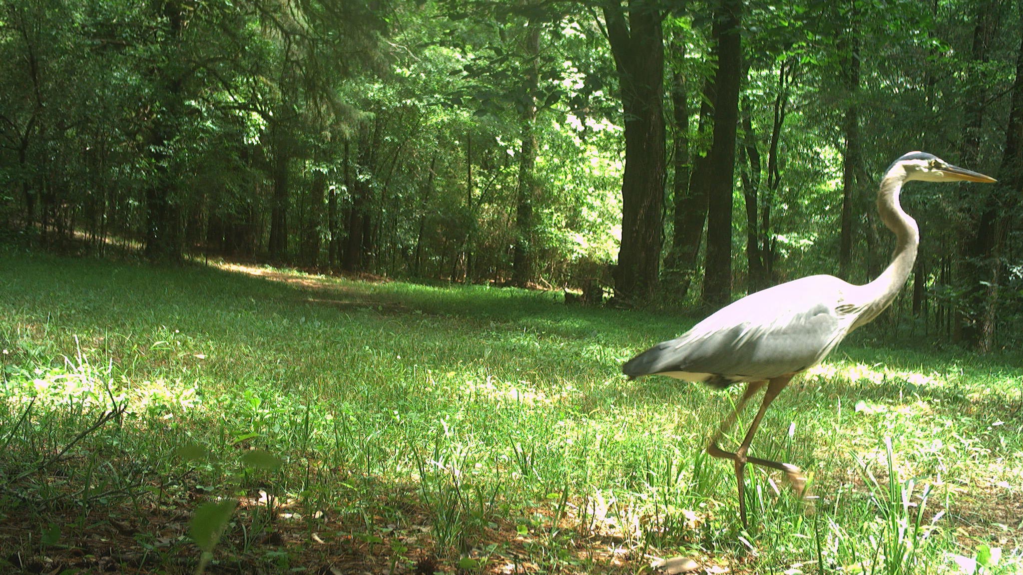 Usual guests like coyotes, bobcats, and turkeys made their rounds, but we are especially thrilled by multiple sightings of Great Blue Herons and Northern Bobwhites. Not only have they been appearing on camera, but their distinctive “bob-WHITE!” calls have been echoing across the property, bringing a nostalgic summer soundtrack to our days.